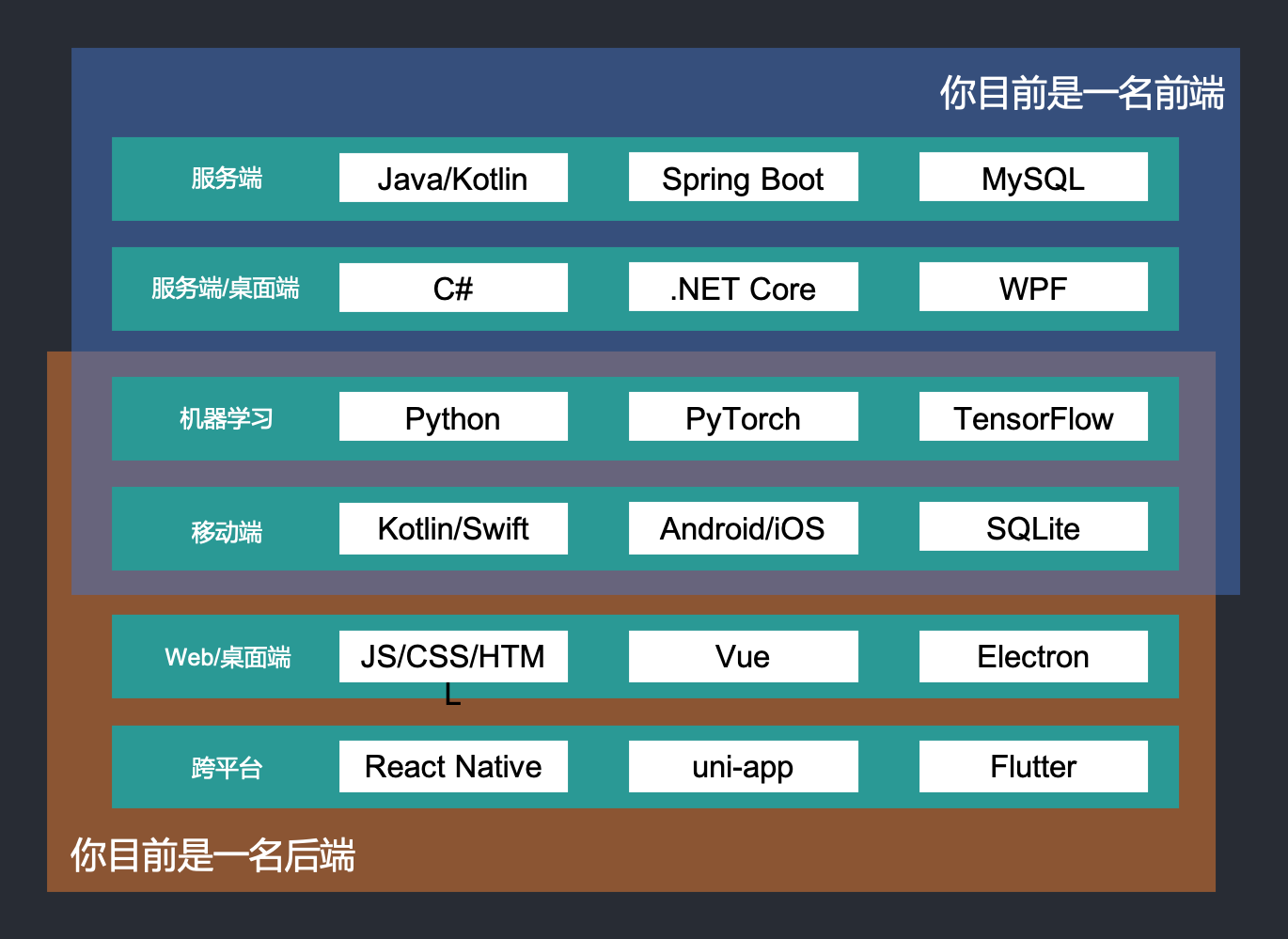 - 超强的学习能力:全栈需要快速掌握很多技能,所以必须具有超强的学习能力
