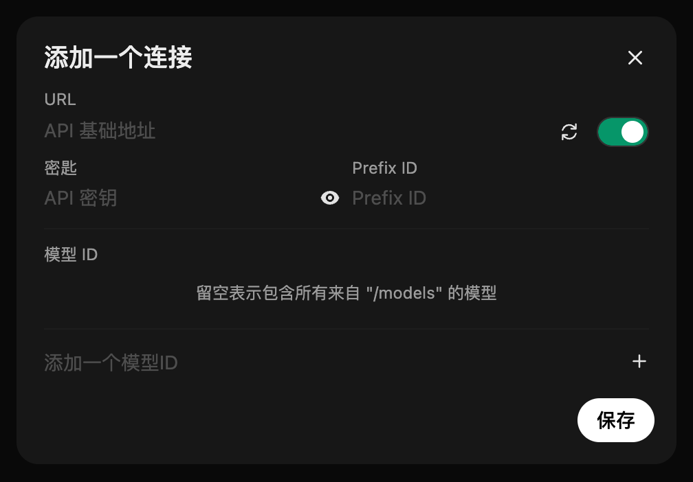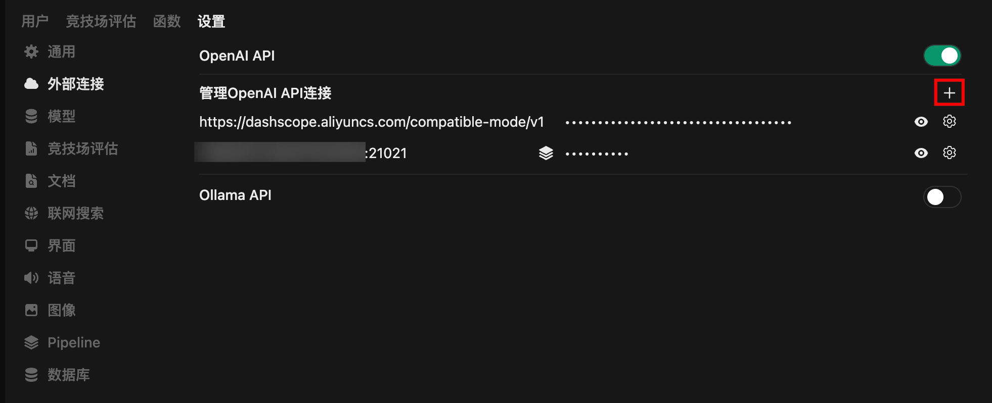 • 管理员设置 -> 外部连接 中按 + 添加一个连接。